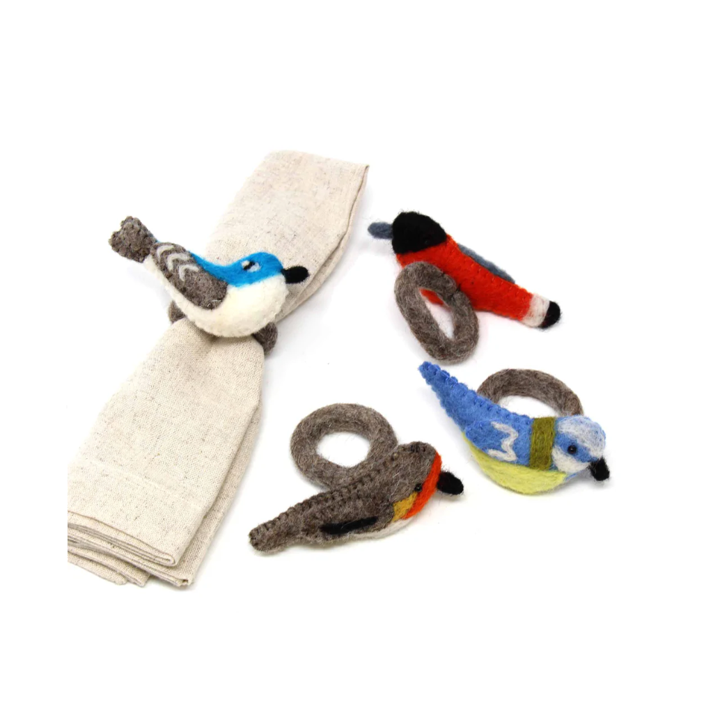 These felted napkins rings are sure to bring some color and fun to your dinner table. Measures 2.5" x 2" with a 2" diameter ring; 4 pack only, colors as shown. Handmade in Nepal.