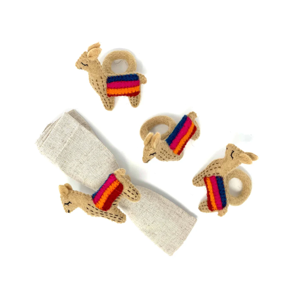 These felted napkin rings are sure to bring some color and fun to your dinner table. Measures approximately 4" x 3"; 2" diameter ring. Handmade in Nepal.